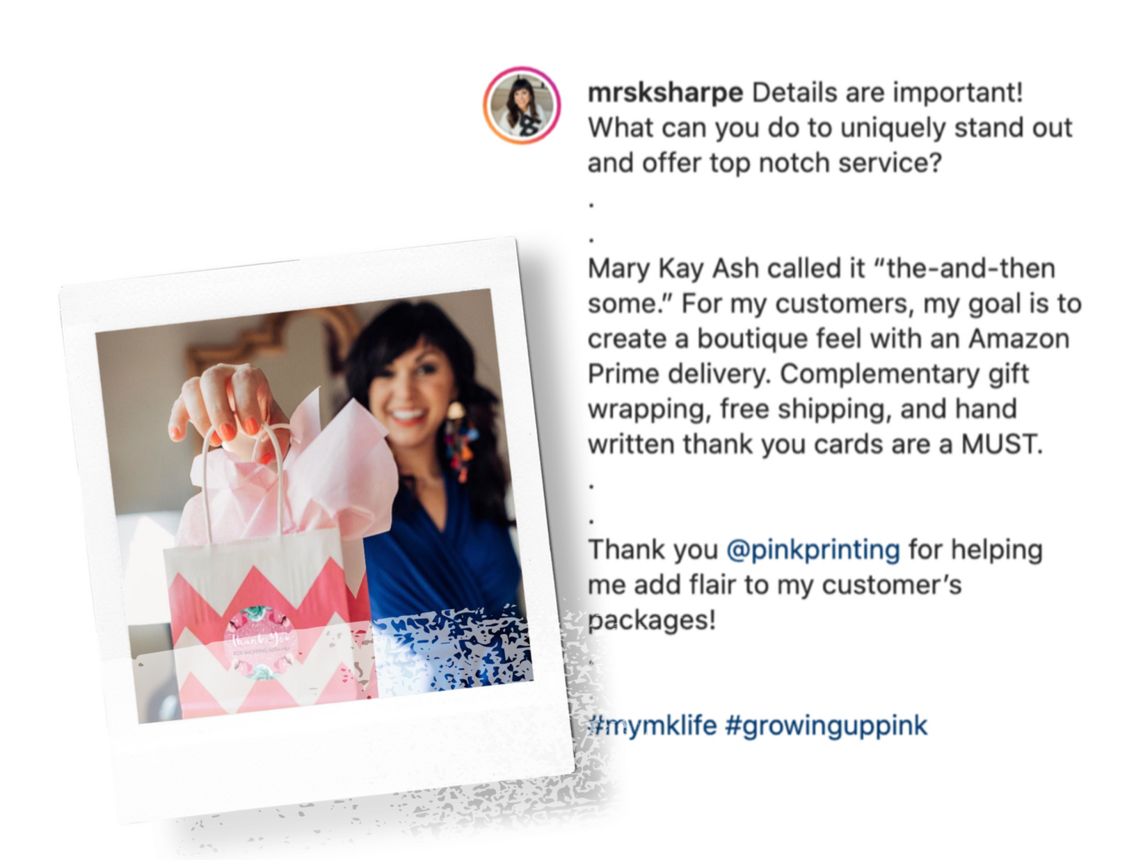Prints to put in customer orders or hand out while warm chatting to invite to giveaways, freebies, or monthly promos.
